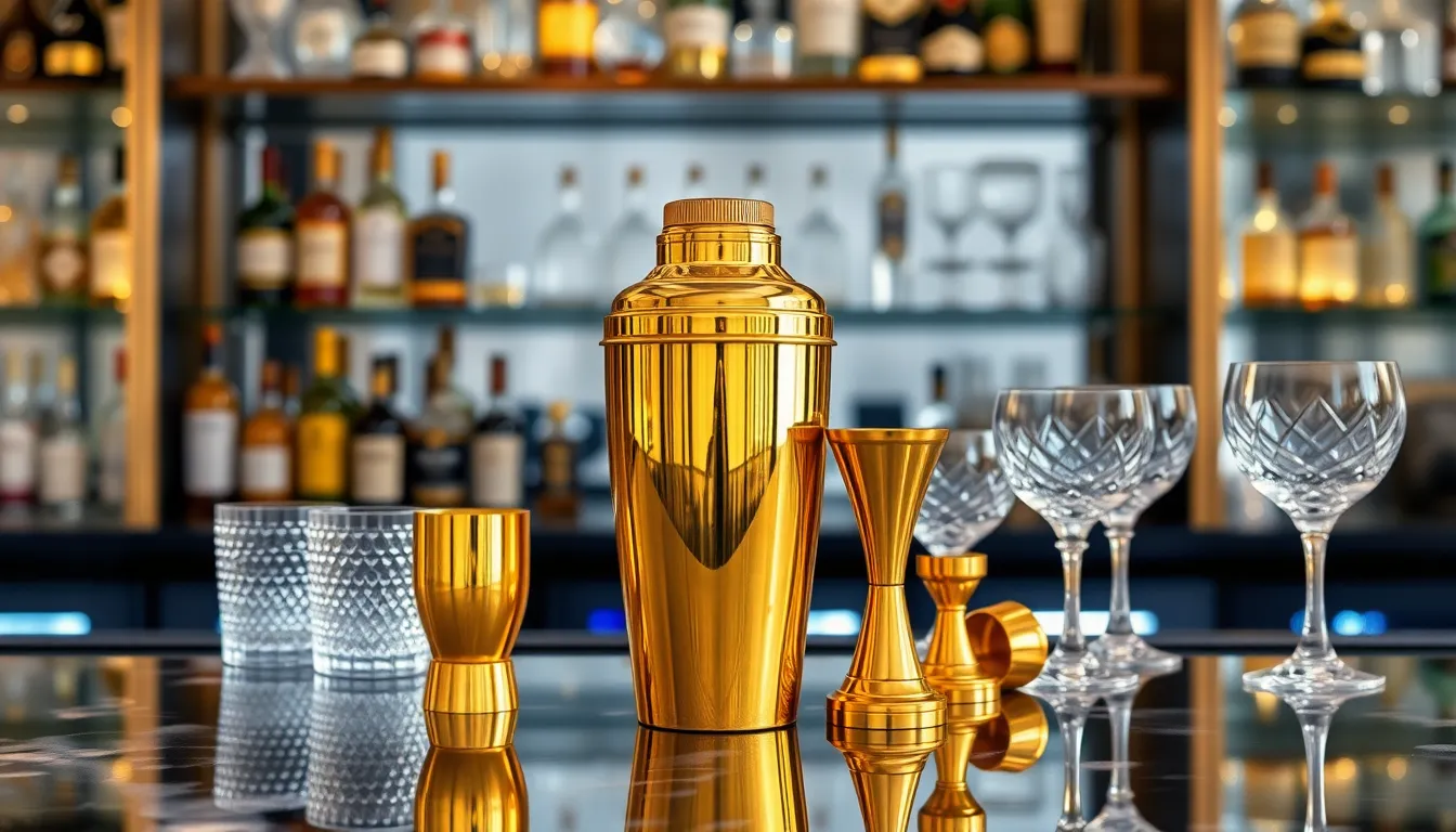 Incorporating a gold cocktail shaker into a bar setup not only enhances drink preparation but also creates a sophisticated atmosphere that impresses guests and transforms every gathering into a celebration.